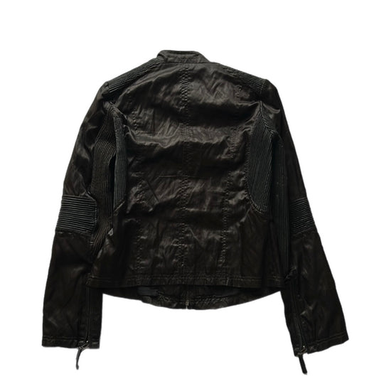 Fitted Satin Jacket with Leather Details