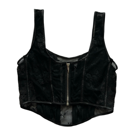 Lace Trim Corset Style Top with back zip-up