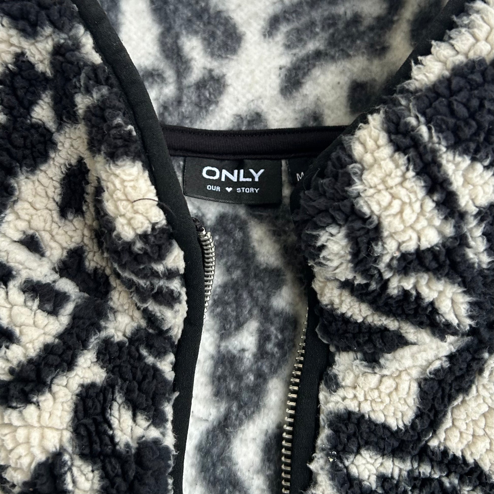 ONLY 1/4 Zip Fuzzy Black & White Fleece