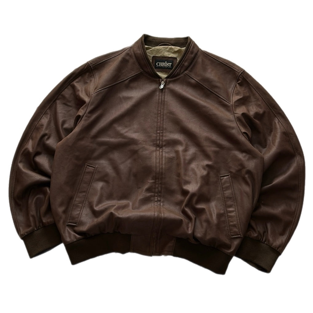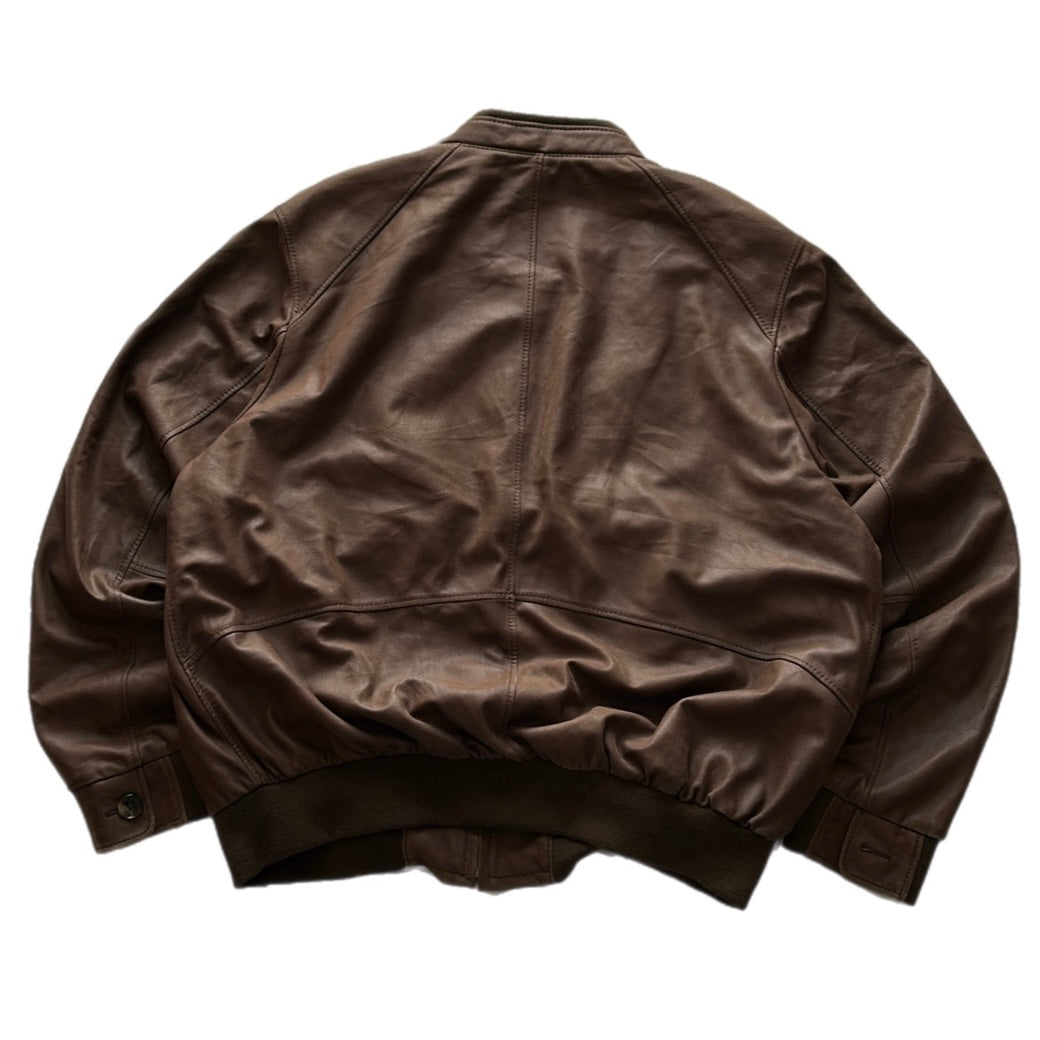 Brown Leather Bomber Jacket