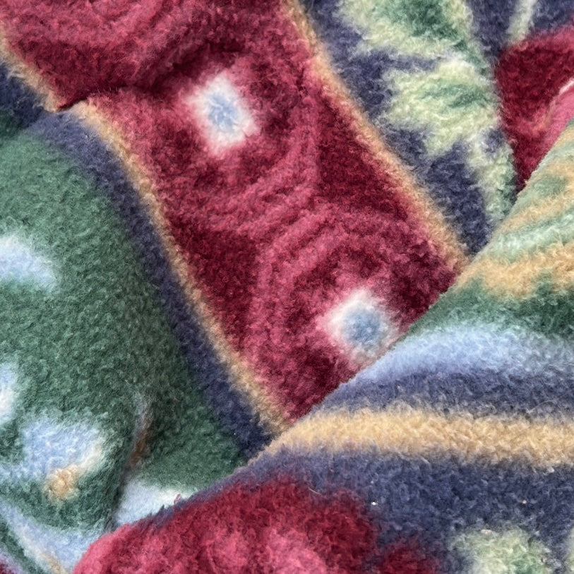 Vintage Floral Patterned Full Zip Fleece Jacket