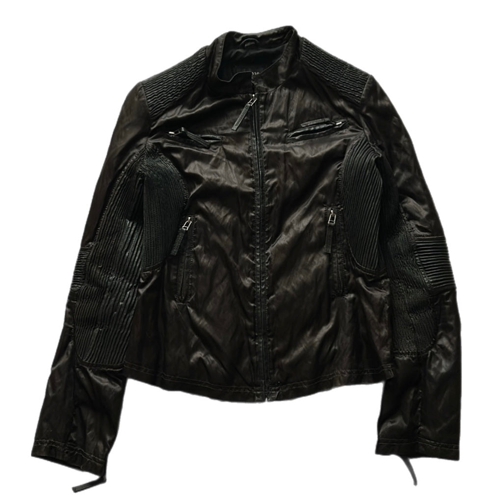 Fitted Satin Jacket with Leather Details
