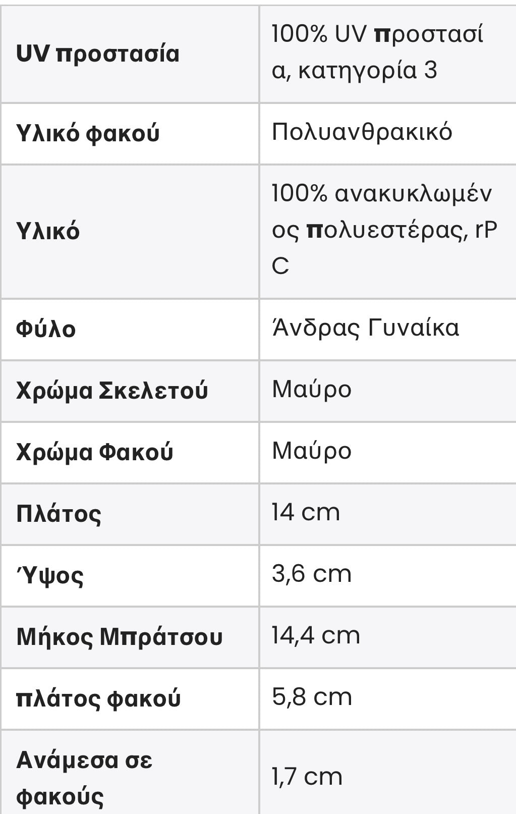 | UV-protection | 100% UV protection, category 3 |